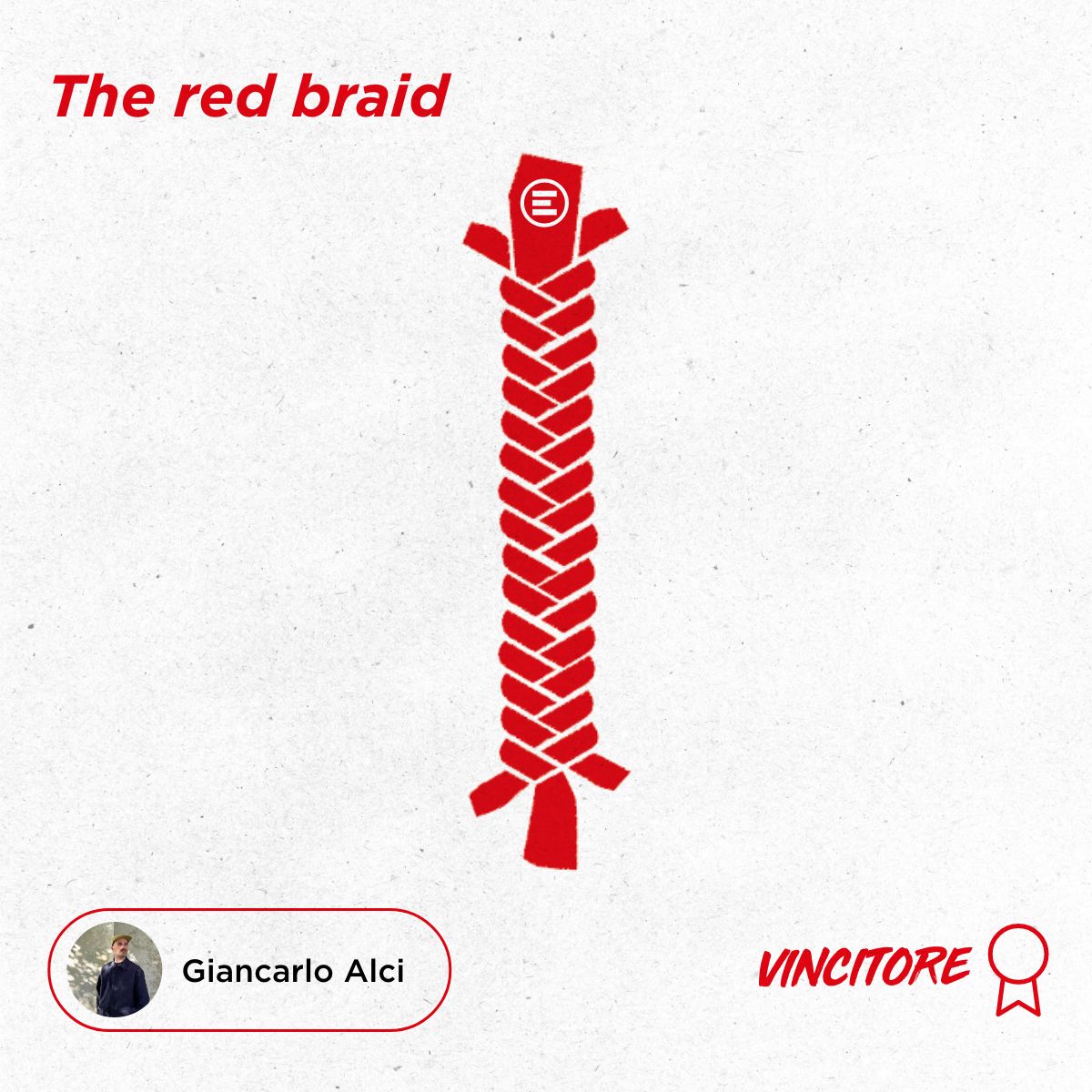 L’illustrazione The red braid, ovvero ‘L’intreccio rosso’ di Giancarlo Alci, è composta da tre bende intessute trenta volte, come gli anni di attività di EMERGENCY, e alla cui estremità superiore si trova il logo dell’Associazione. Un’immagine iconica che rappresenta l’unione per darsi forza reciprocamente, per uno scopo comune come la convivenza pacifica e il diritto universale alla cura, e che richiama alla cura e alla guarigione nella stessa scelta dell’elemento raffigurato, ossia le bende.