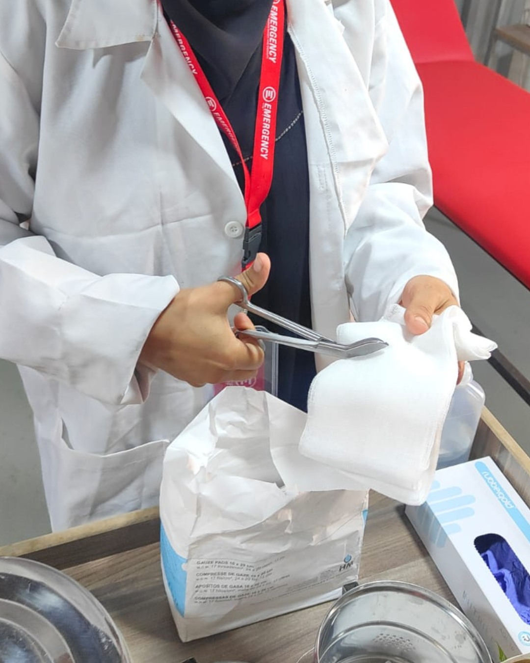 Il team sanitario di EMERGENCY – composto da 2 infermieri e 2 medici – supervisiona l’attività clinica, coordina e forma lo staff locale impiegato da CFTA, 7 colleghi sanitari e non.